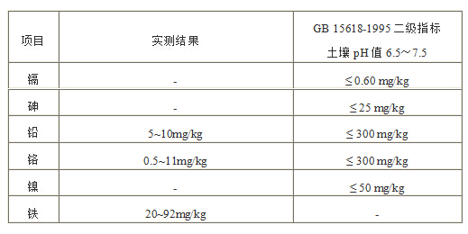 盡管國標GB 535—1995注明“硫酸銨作物農業用時可不檢驗鐵、砷、鉛、鉻等重金屬含量等指標”,但為慎重起見,在上述測試時對副產物硫銨進行重金屬含量檢測,實測值如下: